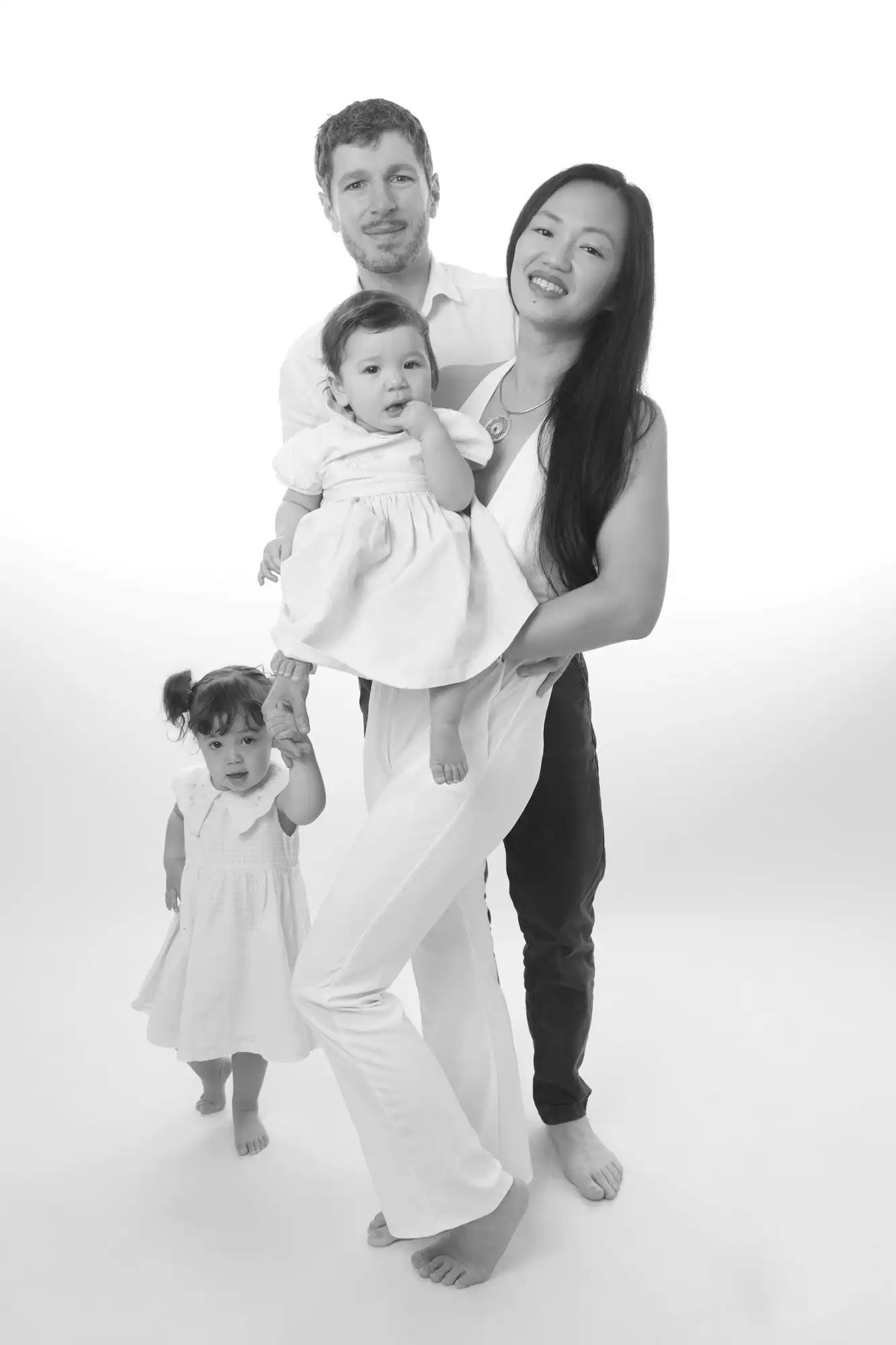 Dans la douceur d’un fond blanc, ce couple et leurs deux grands enfants ont partagé un moment simple, complice, rempli de rires et d’émotions. Ces clichés racontent leur histoire, celle d’une famille soudée, riche de souvenirs et de liens forts.